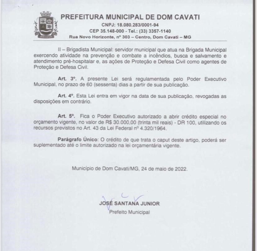 Para o prefeito José Santana Júnior, o “Juninho da Saúde”, a Brigada Municipal a ser instalada em Dom Cavati será uma grande conquista para todos. “Além dos brigadistas municipais capacitados e treinados teremos ainda a presença contínua de militares do Corpo de Bombeiros do Estado de Minas Gerais, uma classe reconhecida mundialmente por seus serviços prestados sempre com extrema competência, dedicação e amor ao que fazem”, ressaltou o prefeito.