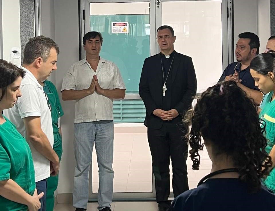 Acompanhado pelo pároco da Paróquia do Bom Pastor, padre Lucas Reginaldo Bemfica, e pelo vigário, padre Paulo Rogério Machado, dom Juarez percorreu diversos setores do hospital, incluindo as Unidades de Tratamento Intensivo (UTI) adulto e neonatal, além da unidade de Urgência e Emergência. Durante as visitas, o bispo realizou orações e conversou com os presentes, reforçando o cuidado pastoral da Igreja junto aos enfermos.