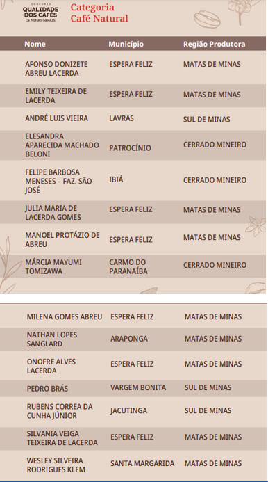 Produtores da região das Matas de Minas predominam na lista