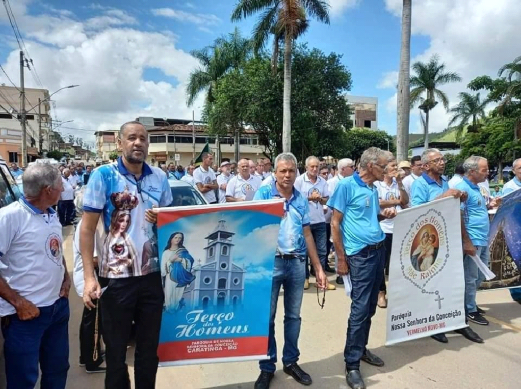 Missa, procissão e o lançamento de um terço ao céu compuseram a programação do evento, promovido por integrantes do terço dos homens de Bom Jesus do Galho e de Caratinga, com apoio da paróquia