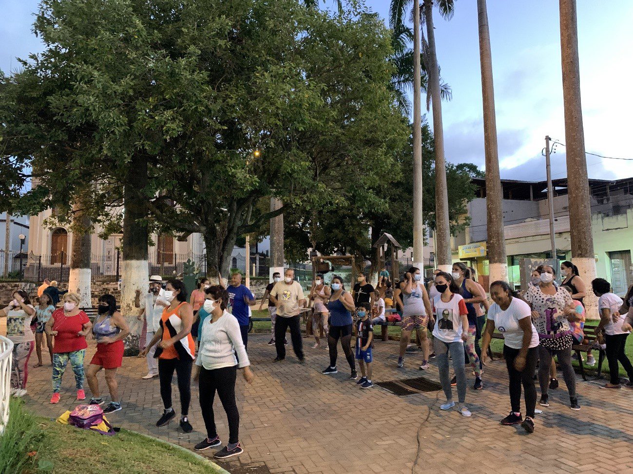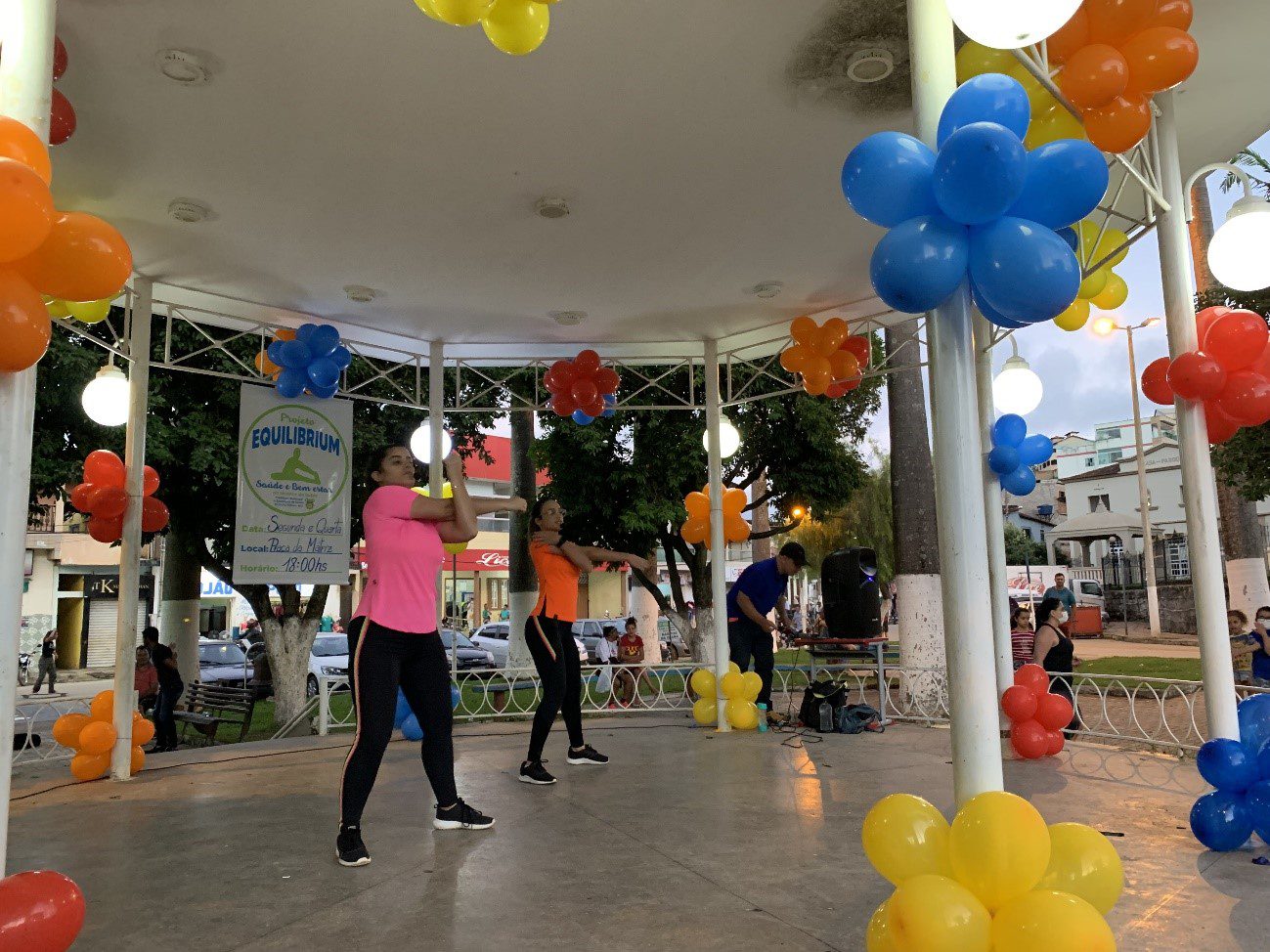 ENTRE FOLHAS – O lançamento do programa de atividades físicas do “Projeto Equilibrium”, ao ar livre, aconteceu na noite da última segunda-feira (22) na Praça José Lanzilotti. O evento de estreia, organizado pela equipe da Secretaria Municipal de Saúde, contou com a participação de duas dançarinas profissionais, que conduziram as séries de alongamentos e exercícios. As aulas acontecem de segunda a quinta-feira, na praça principal da Cidade e na academia do centro esportivo Mauro Lopes.
