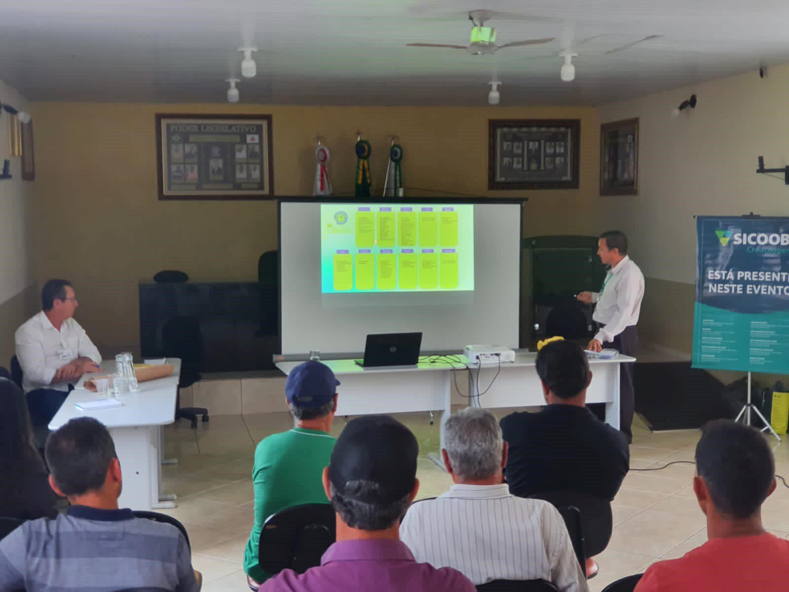 ENTRE FOLHAS – O treinamento do núcleo de Entre Folhas para a formação de uma cooperativa agropecuária na região de Caratinga aconteceu nos dias 29 e 30 deste mês de agosto, na Câmara Municipal. O curso gratuito, oferecido pelo banco Sicoob Credcooper, em parceria com a Secretaria de Agricultura e Meio Ambiente, foi ministrado pelo Gerente de Responsabilidade Socioambiental do banco, Fábio Junio de Carvalho e contou com a palestra do produtor de café, Jair Monte.