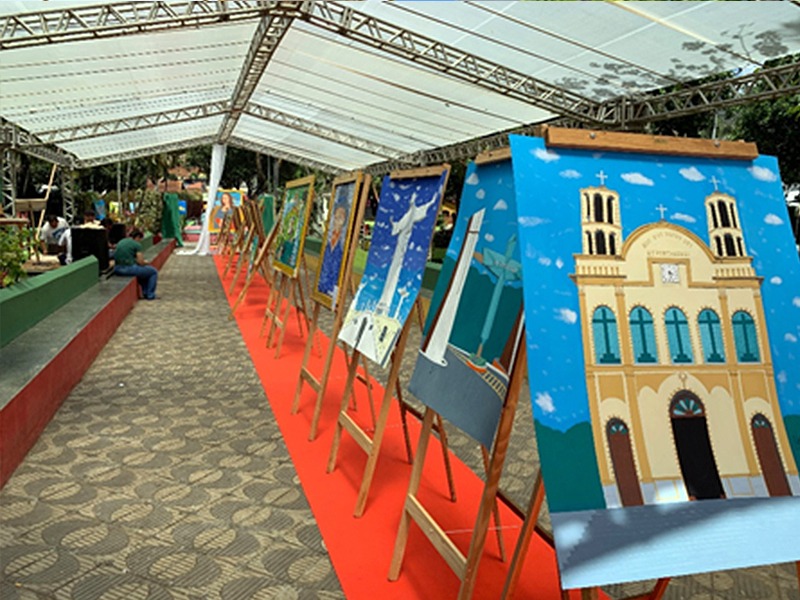 Logo na entrada, um quadro especial retratando a Igreja Matriz do Senhor Bom Jesus recebia os visitantes. Um espaço de homenagens também chamou atenção, com pinturas dedicadas à secretária de Educação, Ludmilla Sales, e à professora Elizabeth Paiva, retratando-as ao lado de seus familiares.