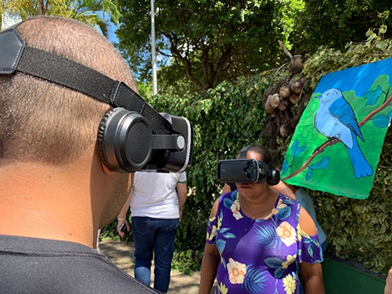 Além da exposição, os estudantes tiveram acesso a uma experiência imersiva de realidade virtual, utilizando óculos 3D em um ambiente temático da fauna brasileira, ampliando ainda mais o contato com tecnologia e novas formas de aprendizagem.