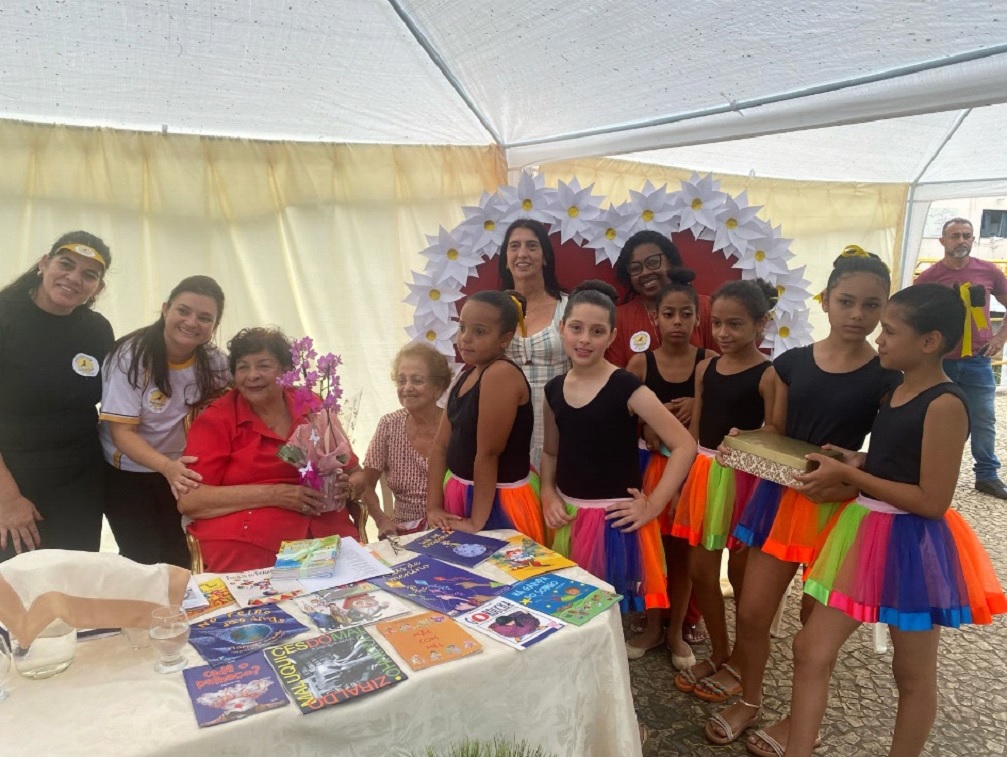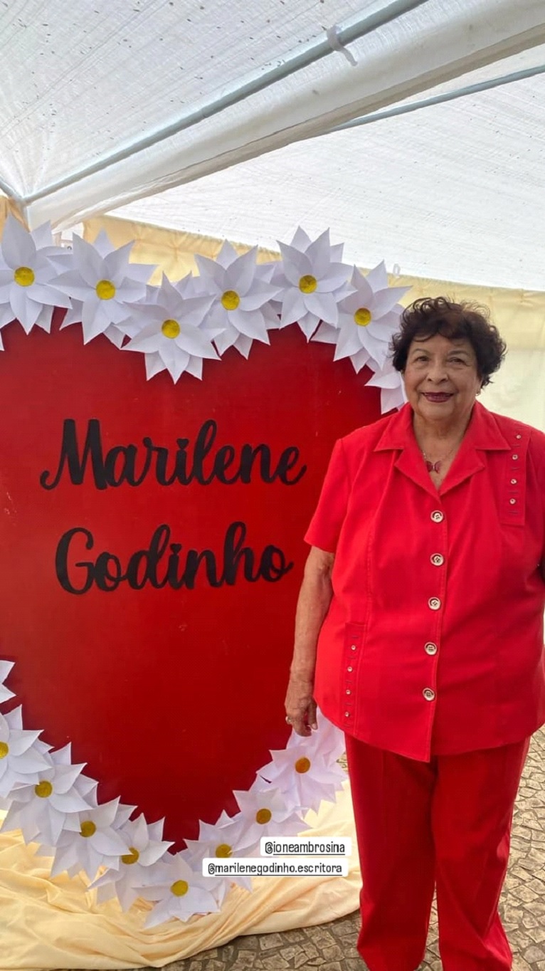 Cada escola escolheu um escritor e sua obra. A Escola Ione Ambrosina de Siqueira sob a direção de Marlete Maria Flamini focalizou minha obra e meu nome. Além da biografia lida por uma aluna da escola, pudemos folhear a biografia impressa com retratos e palavras de apreço. Ainda cantaram a música que fiz para homenagear Inhapim, terra de meu pai e avós, composta quando morei nesta cidade querida que me deu também o título de cidadã honorária e uma rua com o nome de minha avó Amélia Godinho.
