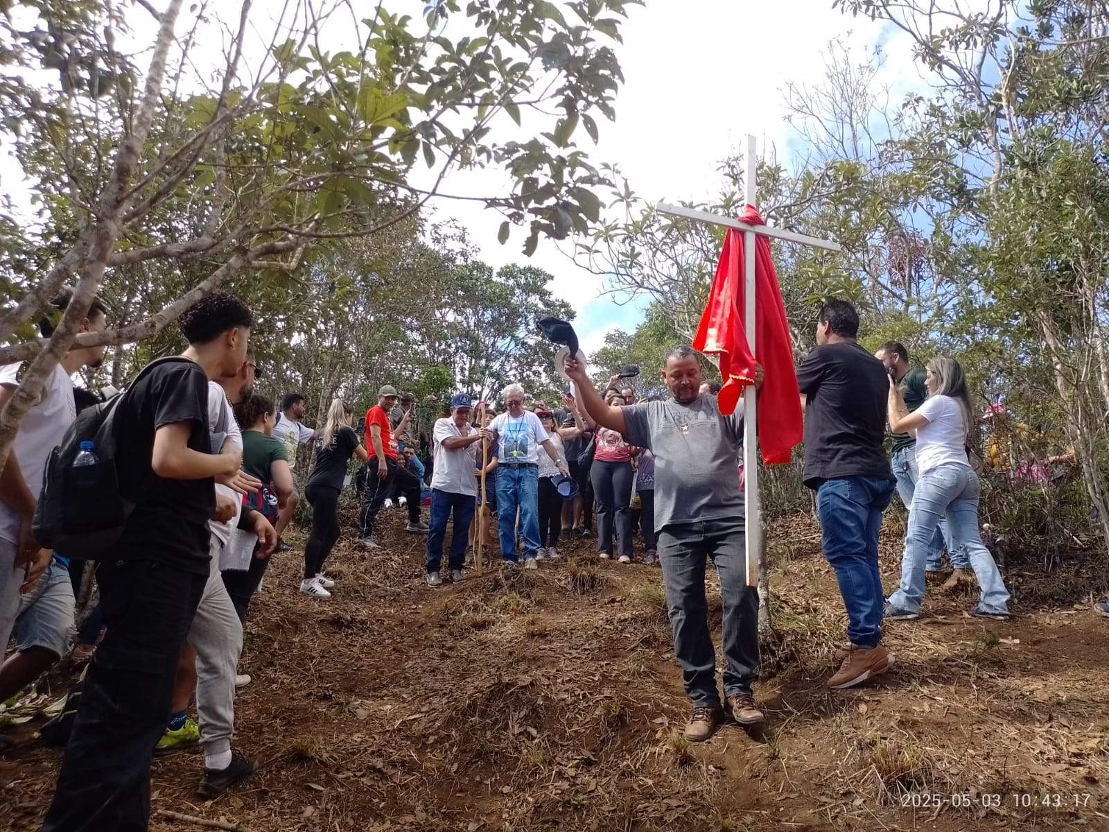 Na trilha que leva ao alto do Cruzeiro, os fiéis rezaram nas estações da Parada de Oração Via Sacra, como um ato de devoção, até a chegada ao ponto mais alto, onde outros fiéis esperavam a chegada de padre Antônio Otaviano, que foi recebido com uma calorosa salva de palmas.