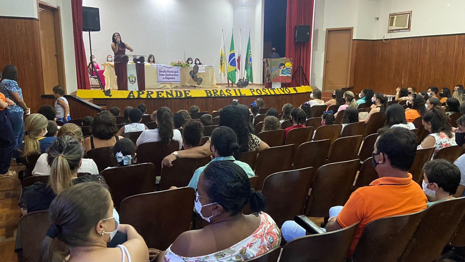 Com a formação da mesa diretora composta pelo vice-prefeito Sandro Adriano (Sandro da Saúde), pela vereadora e ex-secretária de Educação, Leilamar Pires, pela atual secretária municipal de Educação, Carla Ervilha, e pelas representantes de todas as diretoras das 23 escolas da rede municipal de ensino, professora Aparecida Rosa de Oliveira, diretora da Escola Municipal “Dr. Alípio Fernandes”, professora Cristiane Eugênio, diretora do pré-escolar “Tia Odaísa de Melo Marques” e professora Marlete Flamini, diretora da Escola Municipal “Tia Ione Ambrosina de Siqueira”, e para representar a rede estadual de ensino, a mesa foi composta pela Superintendente Regional de Ensino, professora Landislene Gomes Ferreira.
