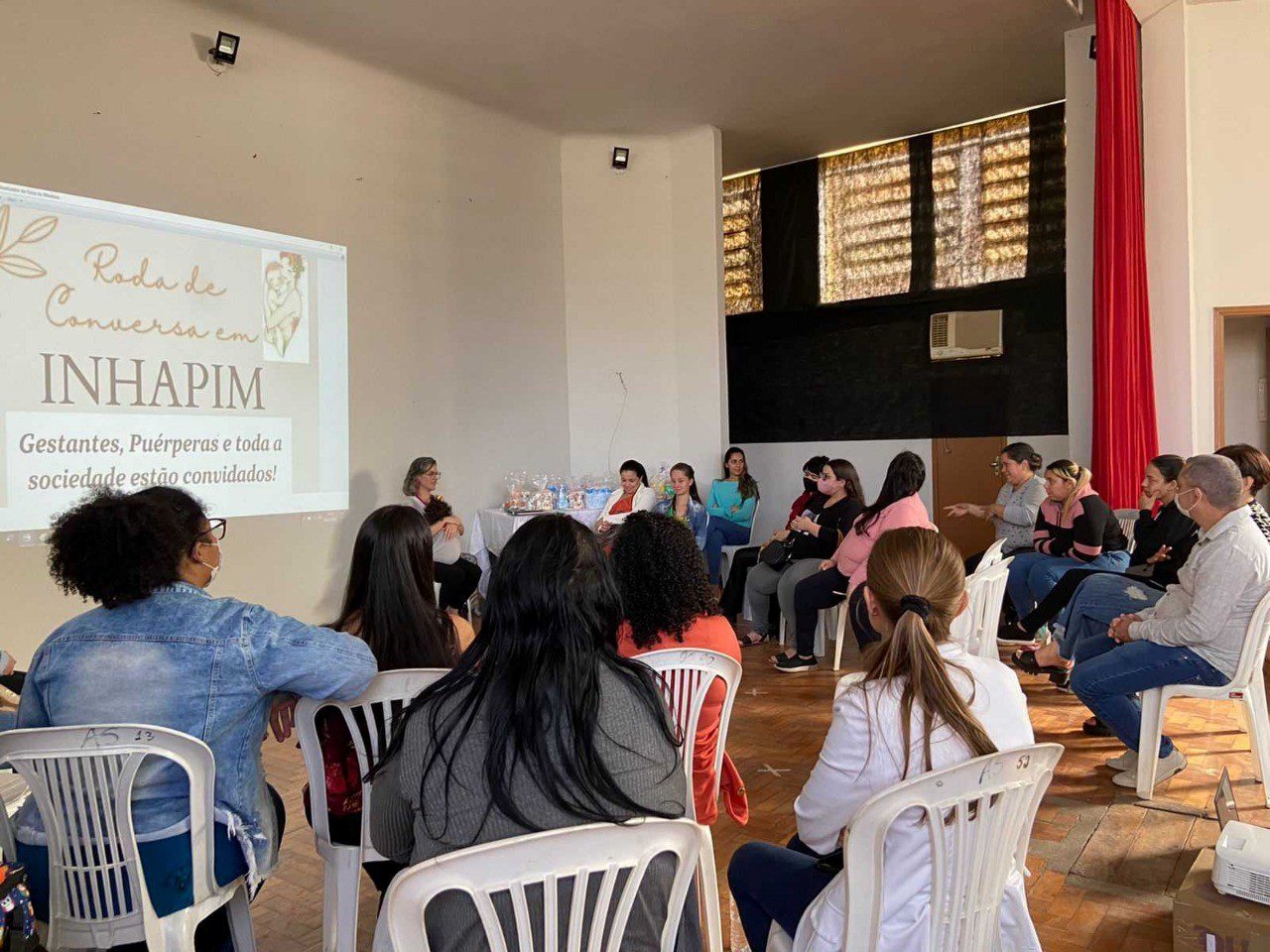 INHAPIM – A Prefeitura de Inhapim realizou através da secretaria de Saúde, uma roda de conversa para orientação de gestantes e puérperas que são acompanhadas pelas Unidades de Saúde do município. A roda de conversa ocorreu no salão nobre da prefeitura e contou com a participação de dezenas de mulheres em período gestacional, além de servidores e profissionais de saúde da atenção básica do município.