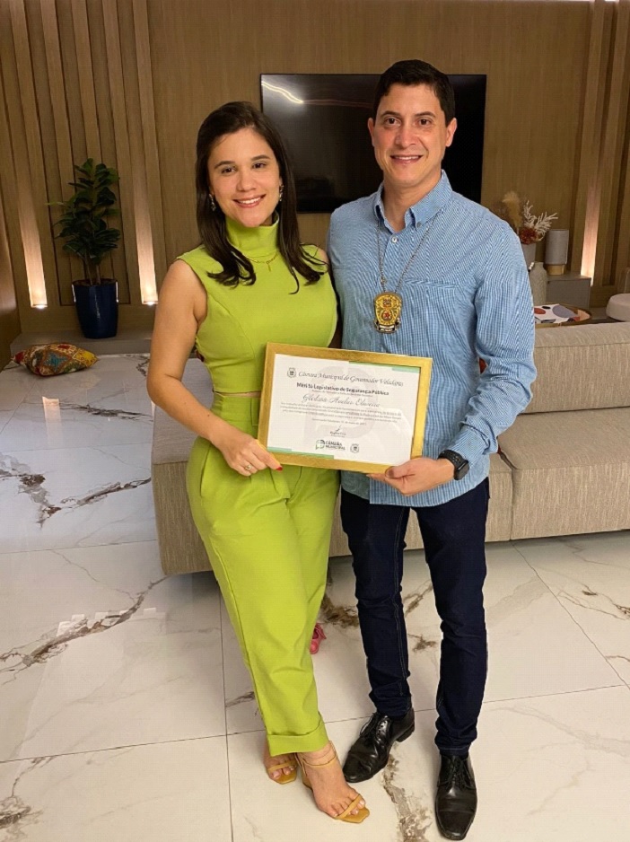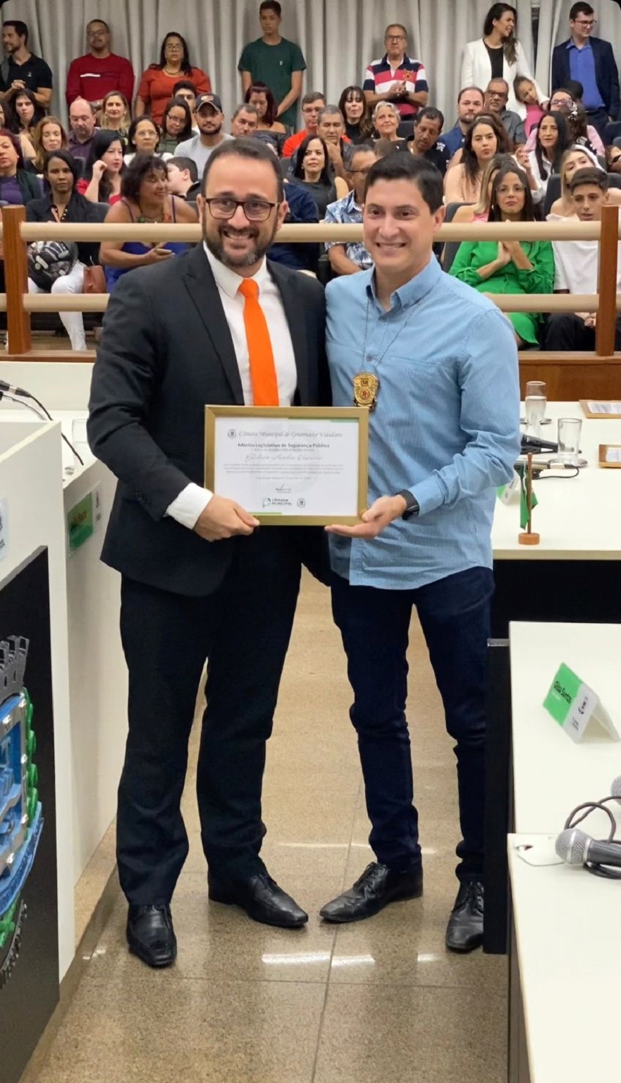 Representando a Câmara Municipal de Governador Valadares, o vereador Alê Ferraz (Novo) autor da indicação, entregou a comenda ao homenageado ressaltando seu trabalho e dedicação incansável pela segurança pública da população valadarense; “Este é um tímido mas justo reconhecimento pelo seu trabalho árduo, dedicação incansável pela preservação da paz e tranquilidade de nossa comunidade. Gratidão aos servidores da Polícia Civil do Estado de Minas Gerais e em especial a você, pelo comprometimento em garantir a segurança e a ordem pública em nosso município”.