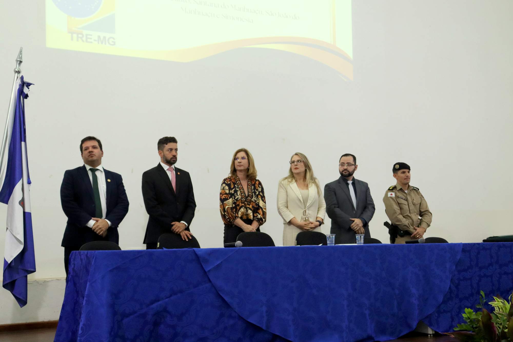 A solenidade que aconteceu no anfiteatro da Câmara de Manhuaçu, foi conduzida pela juíza eleitoral, Patrícia Bitencourt Moreira e pela promotora eleitoral Geannini Maeli Mota Miranda, com presença do comandante do 11º BPM, tenente-coronel Wesley Flávio, chefe do cartório eleitoral Gabriel Vinícius Atílio, delegado regional Felipe de Ornelas e o presidente da 54ª Subseção da OAB, Glauber Carvalho Vidal de Lacerda.