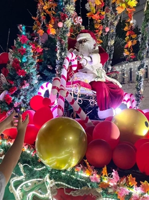 A programação teve início com um cortejo natalino que percorreu as principais vias da cidade, envolvendo dezenas de participantes e instituições. O desfile contou com a participação das escolas municipais Ione Ambrosina, Creche Enedina Soares, Pré-Escola Municipal Tia Odaisa e Escola Municipal Dr. Alípio Fernandes, além do Colégio LDC, carros das secretarias municipais e do Laboratório Santa Mônica.