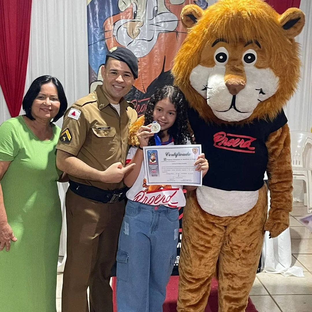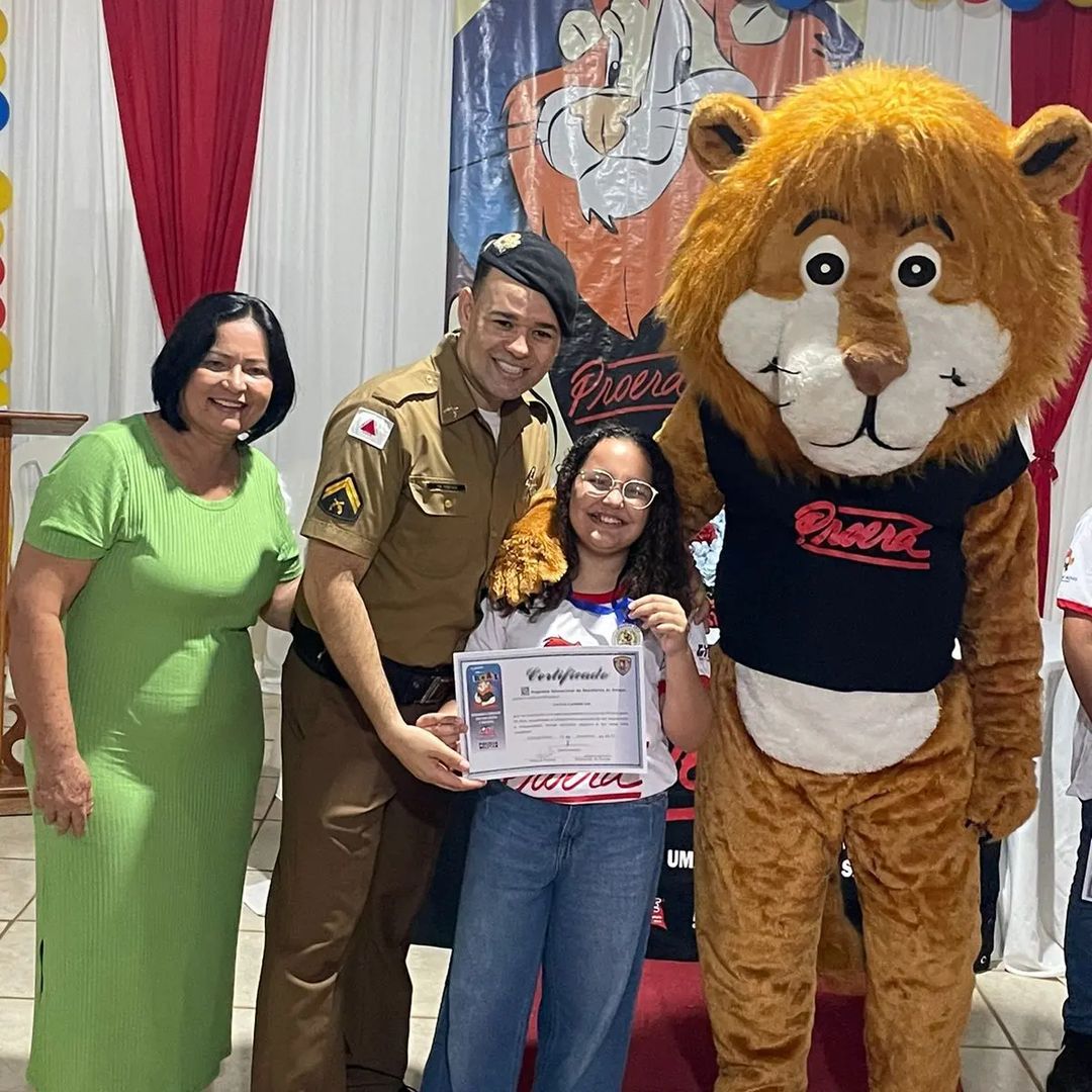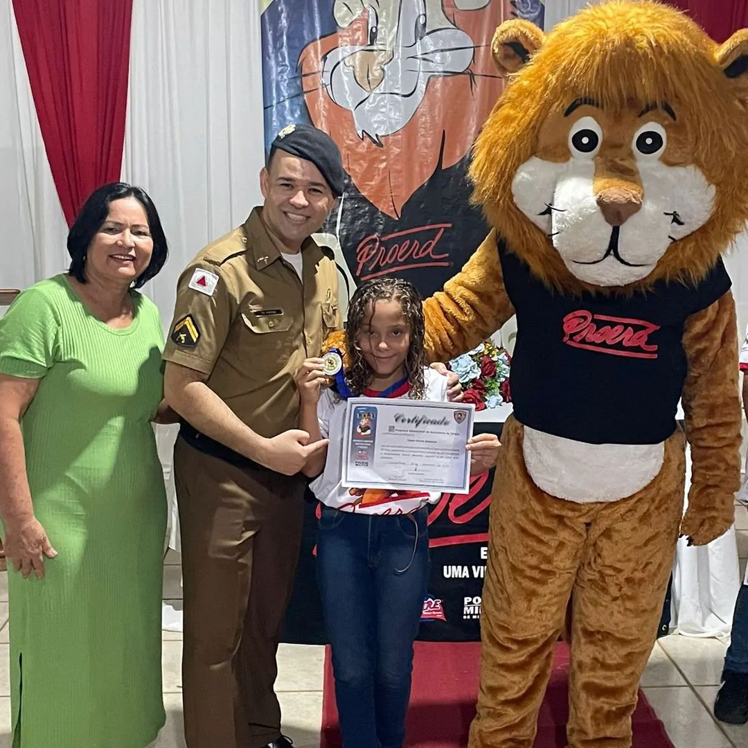 Na cerimônia cada aluno recebeu um certificado e uma medalha do PROERD. Os alunos ainda prestaram o compromisso de se manterem longe das drogas e da violência.