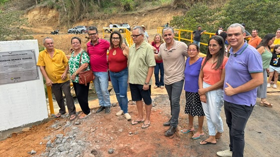 A ponte recebeu o nome em homenagem ao senhor Joaquim Mendes Teixeira, pioneiro morador do Córrego dos Teixeiras e pai do ex-vereador Laerte Tucano (MDB) que representando sua família, agradeceu ao prefeito Marcinho e ao vice-prefeito Sandro da Saúde pela realização da obra “Foram 36 anos de espera para conquistarmos a tão sonhada ponte de concreto armado e vigas metálicas para nossa comunidade dos Teixeiras. Meu pai não presenciou em vida este teu sonho, mas eu, minha esposa e minhas irmãs estamos aqui para testemunhar este feito e agradecer ao prefeito Marcinho e ao vice-prefeito Sandro por realizá-lo”, finalizou o vereador.