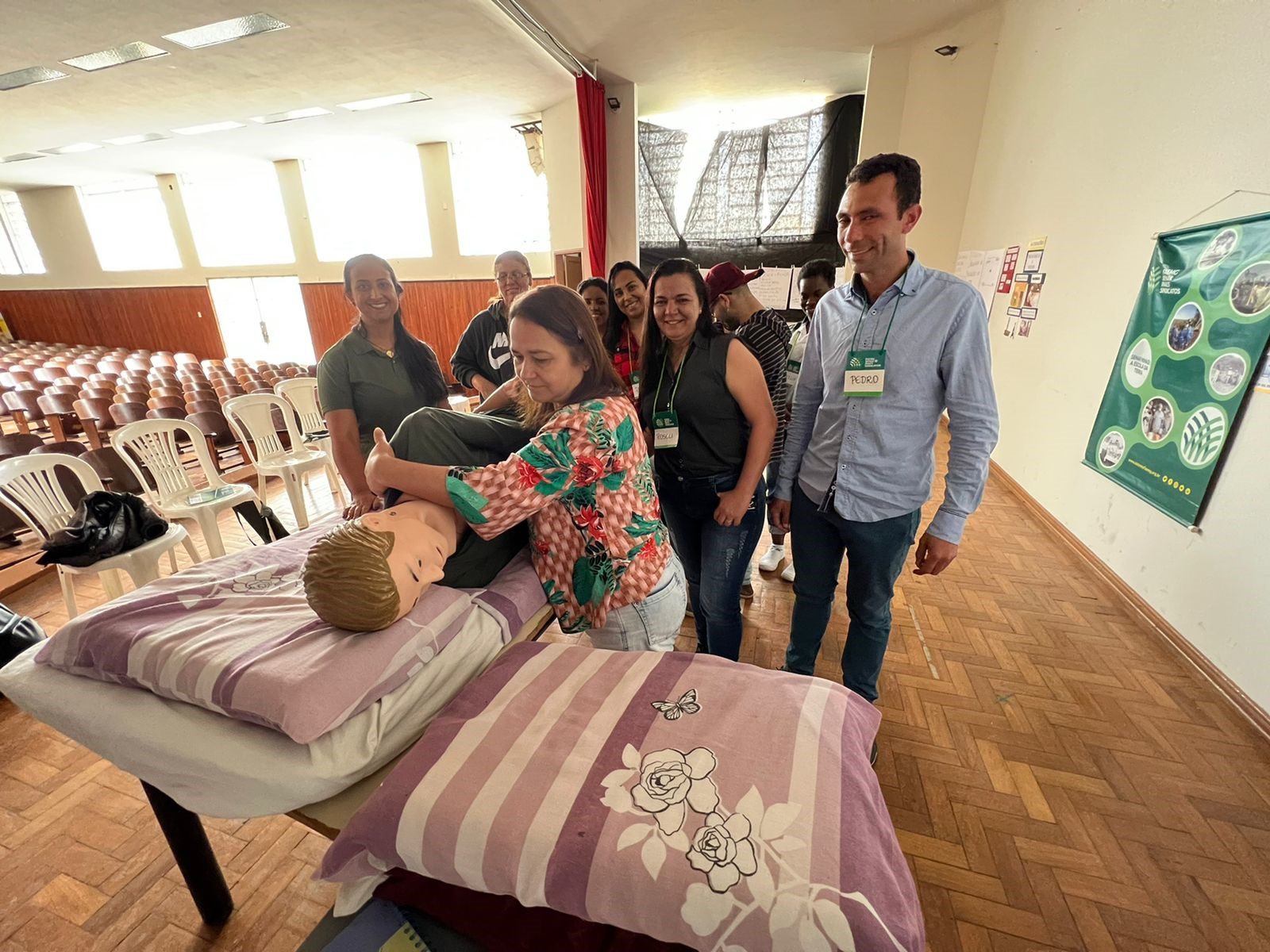 Dez pessoas participaram do curso de saúde e atenção ao idoso, e puderam aprender como adotar os cuidados básicos necessários à manutenção da saúde e bem-estar do idoso, conforme explica a instrutora do Senar-MG e enfermeira Janaína Dornelas Pessoa Gomes. “Com a realização deste curso, queremos direcionar este conhecimento aos familiares que cuidam de idosos em casa, ou pessoas que queiram trabalhar nesta área. Sabemos que muitas famílias não têm condição financeira para contratar um cuidador ou um técnico de enfermagem, e o curso é uma possibilidade de continuar oferecendo dignidade ao ente familiar. Ter alguém que possa colaborar em parte da rotina é essencial para o bem-estar do idoso e, é claro, para a saúde emocional de toda a família, que tem mais segurança”, informou a enfermeira Janaína Dornelas.