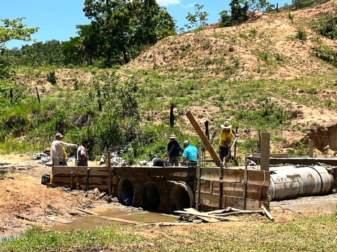 INHAPIM – Para atender os moradores do córrego São Pedro localizado, no distrito de Novo Horizonte, a prefeitura de Inhapim, em parceria com os moradores da comunidade, está realizando a construção de uma ponte em jogos de manilhas no local.