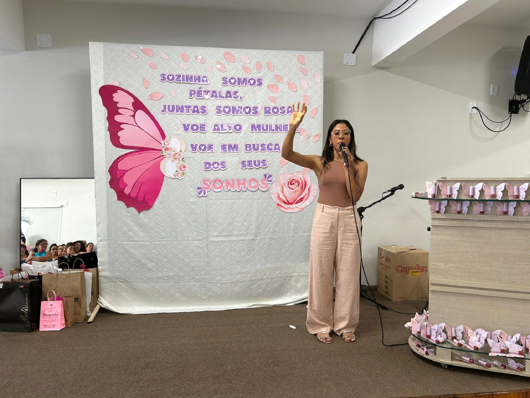 O evento aconteceu na praça José da Silva Araújo, dentro das instalações da Primeira Igreja Batista e contou com a presença de dezenas de pessoas. Dando início ao evento a secretária de Educação, Esporte, Cultura e Lazer, Meire Debora, agradeceu a presença de todos citando diferença que as mulheres fazem no mundo e quão preciosa são. A primeira homenagem do dia foi feita pela nutricionista Lorena falando sobre boa alimentação e saúde da mulher com dicas valiosas de elevar a autoestima e o autocuidado.