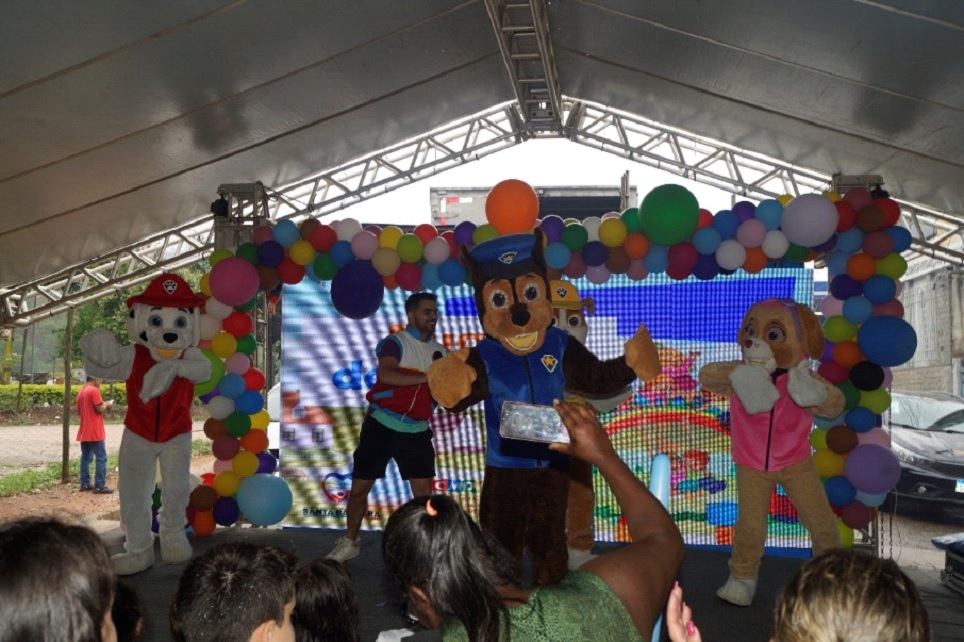 Nem a chuva que caiu durante o evento foi capaz de diminuir a alegria das centenas de crianças, que ainda foram surpreendidas com um show com os personagens da Patrulha Canina.