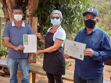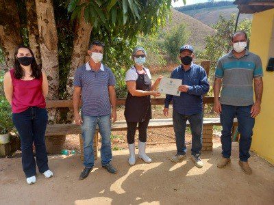 VERMELHO NOVO – O prefeito de Vermelho Novo Zé Boneizinho, juntamente com o vice-prefeito Vinícios do Lino, o secretário de Agricultura Cleverson Marcos e a secretária de Assistência Social Eliane Márcia, realizou a entrega do Certificado do Selo Nacional da Agricultura Familiar – SENAF na modalidade SENAF Mulher para a produtora Maria do Perpétuo Socorro Cupertino de Assis, mais conhecida como Maria do Paulinho. A produtora é a primeira a obter o SENAF Mulher em todo Leste de Minas e Zona da Mata e obteve o certificado para Geleia de Morango e para Rosca Caseira de batata doce.
