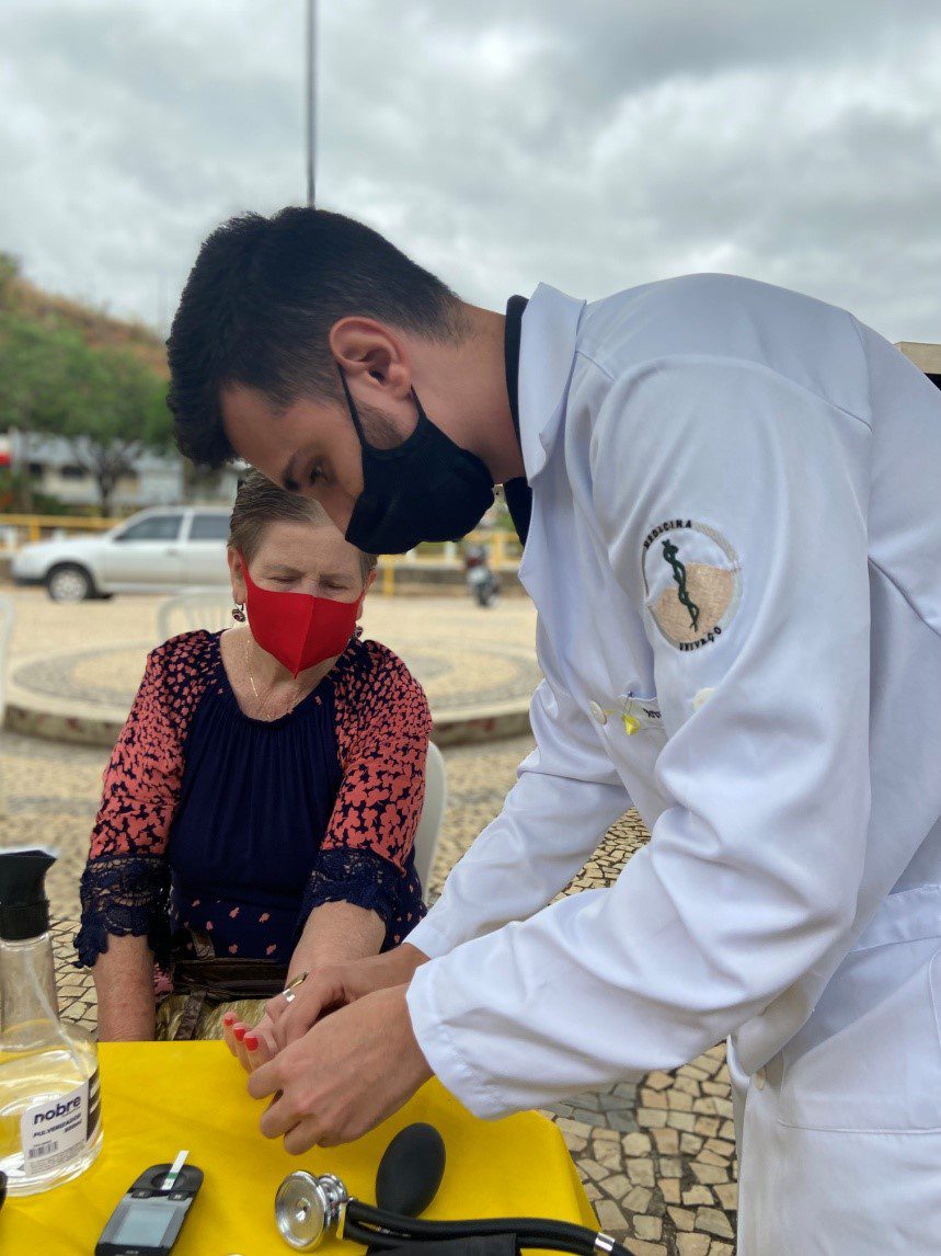 Os alunos dos anos finais do curso de medicina, supervisionados pela equipe técnica da secretaria de Saúde, realizaram aferição de glicemia capilar na população, promoveram aferição de pressão arterial, orientação sobre a importância do setembro amarelo e o combate ao suicídio, e a doenças sexualmente transmissíveis. “Estamos contentes em receber os alunos do curso de medicina da Universidade do Vale do Aço em Inhapim. Parceria como essa ajuda a disseminar a importância do cuidado da saúde e do diagnóstico precoce de doenças em nossa população. Agradecemos a disposição dos estagiários em abdicar do final de semana para contribuir com nossa sociedade visando a promoção da saúde em nosso município,” comentou a coordenadora do programa “Estratégia Saúde da Família”, em Inhapim, Josiane Belo Flamini.