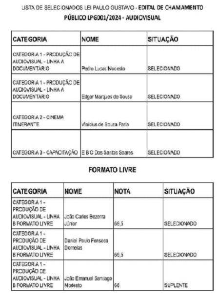Confira a lista dos contemplados: