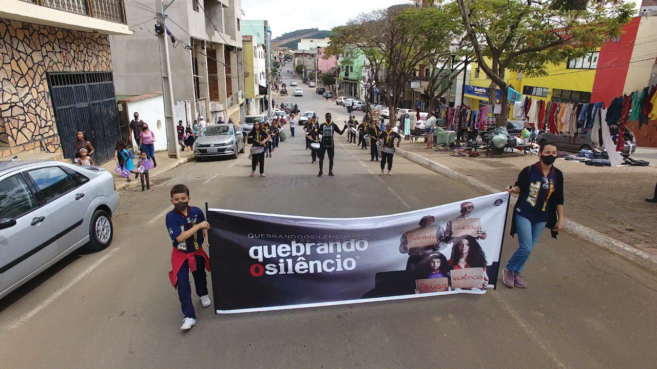 Ao som da “Banda Clube Desbravadores”, de Caratinga, a passeata teve início no Bairro Nossa Senhora de Lourdes e percorreu toda a Avenida principal, com encerramento na Praça da Igreja Matriz, fechando assim, as ações voltadas para o “Agosto Lilás”.