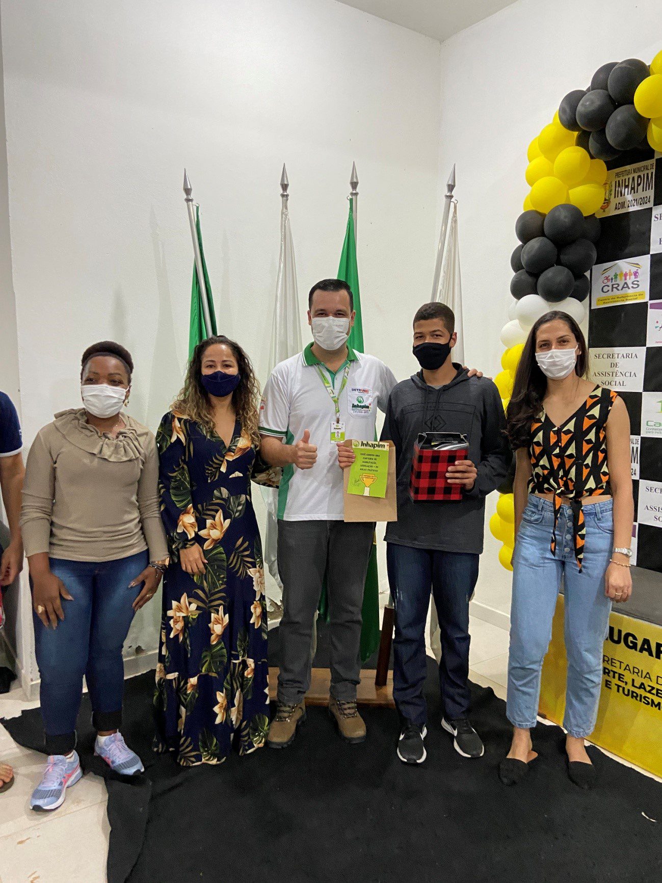 Foram sorteados um celular, um skate, um vale-compras no valor de R$ 100,00, um pacote para primeira habilitação veicular A e B, um fone de ouvido, uma pochete esportiva, um caixa de som portátil, um porta retrato digital, três pares de chuteiras, além de kits para todos os participantes, confeccionados pelos recuperandos da Associação de Proteção e Assistência ao Condenado – APAC de Inhapim.