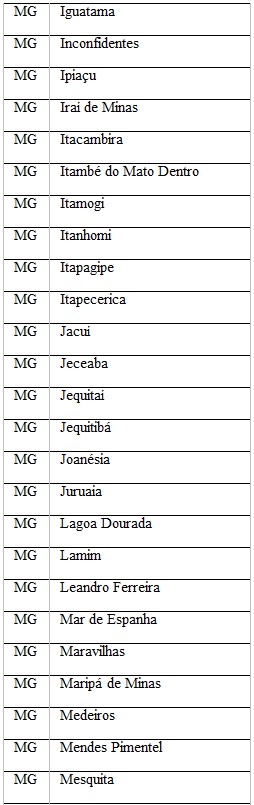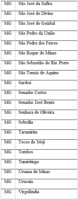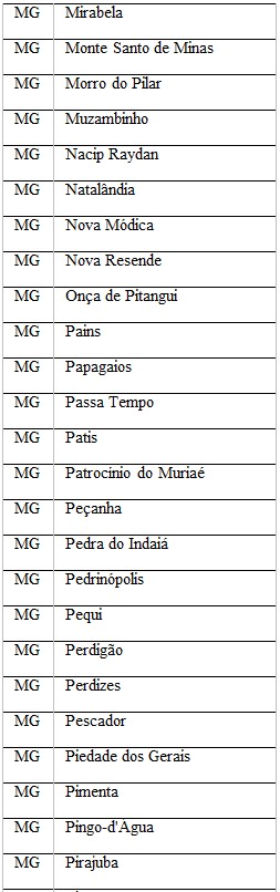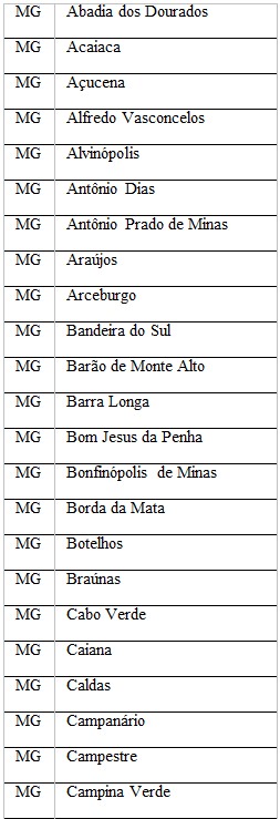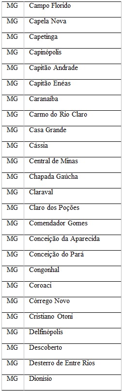 Confira os municípios mineiros beneficiados nessa etapa: