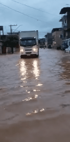 Rosângela de Almeida Coelha, 32 anos, é moradora do bairro Walter Garcia. Ela conta que nem tinha dormido, pois estava preocupada com o nível do valão. “Veio aquela chuva rápida, que depois diminuiu, ficou todo mundo alegre. Não tinha expectativa de enchente porque o valão não estava para transbordar. De repente meu cunhado saiu e voltou gritando que a água tinha subido e saímos para socorrer o povo. Não pegamos nada em casa, peguei minhas meninas e pus no terraço da casa de minha irmã. Fui ajudar o meu irmão e quando voltei, já deparei com a situação, um desespero total”, observa Rosângela.