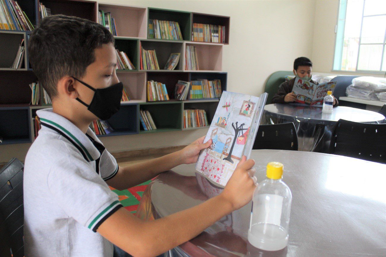 A biblioteca municipal funcionava em um espaço fora da escola. Agora, há um ambiente arejado e mais agradável para as crianças, que ganharam novos livros para escolha. O novo espaço é amplo e conta com mesas para leitura e uma smart tv. “Os recursos audiovisuais também auxiliam na aprendizagem. O televisor ajuda a potencializar a imaginação”, conta a professora bibliotecária Ana Ribeiro.